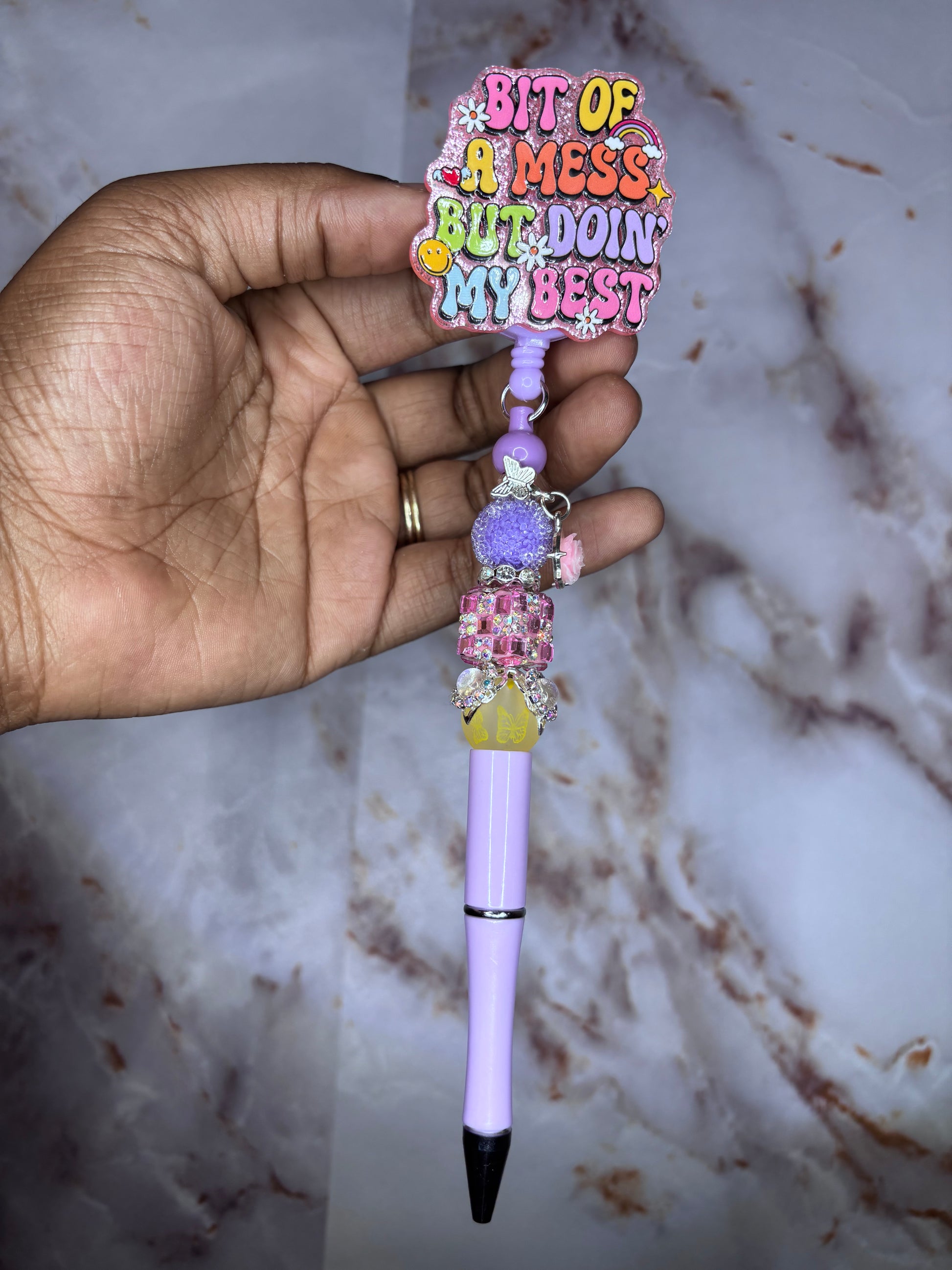 Messy pen badge